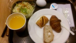 せっかくなので、ホテルの朝食バイキングをいただきました(´∀`)