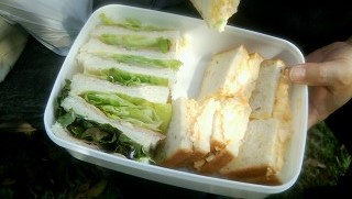 お手製サンドイッチに加え、スティックコーヒーとお湯も完備。