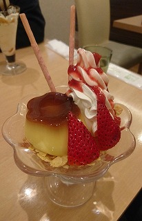 私は↓のイチゴプリンパフェ。珍しく女子力高めで(
