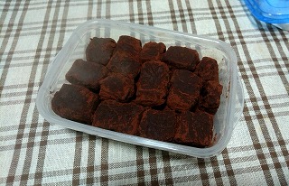 とりあえずネットリするチョコを切り分けてココアまぶして、完成。