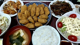 中華の炒め物とレバニラ炒めと自家製ナゲット