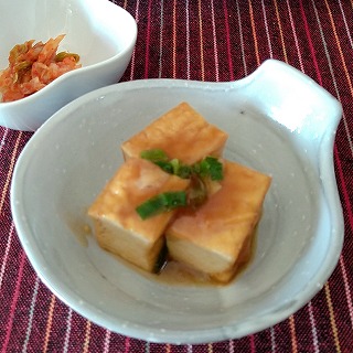 1.厚揚げを一口大に切る(固めのやつは小さめに切ったほうが良い