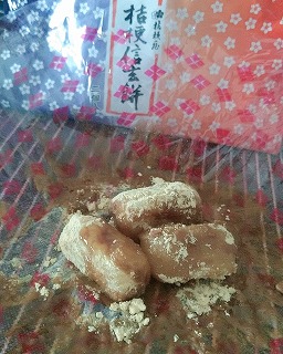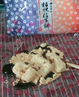 3.ほどよく黒蜜ときな粉が絡まった、信玄餅完成!