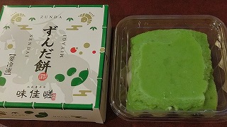 途中のSA(だったと思う)で買った、ずんだ餅(冷凍)をお味見。