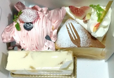 イチゴモンブラン、梨のチーズケーキ、スフレチーズケーキ、いちじくのショートケーキ